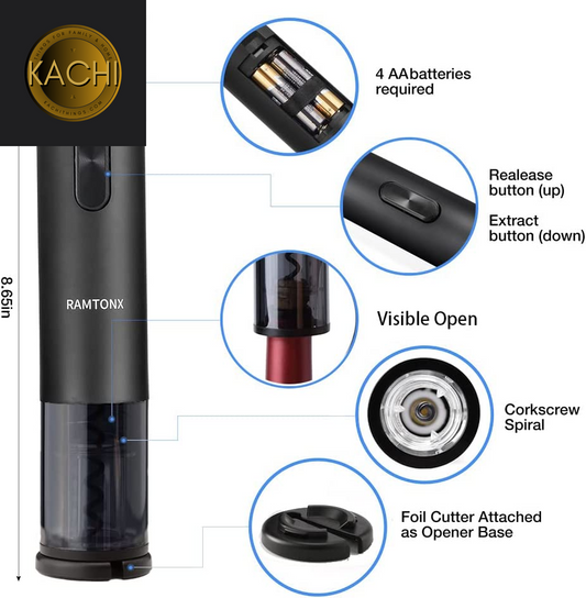 Electric Wine Bottle Opener, Battery Operated Wine Opener Corkscrew Set with Foil Cutter, Automatic Reusable Easy Carry Wine Opener Gift for Waiter Women as Bar Outdoor Kitchen Accessories