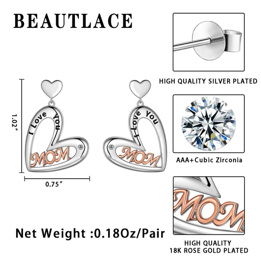 Mom Love Heart Earrings Hoop,Mom Earrings Studs for Mother,Best Mom Drop Hoops Gifts for Mother