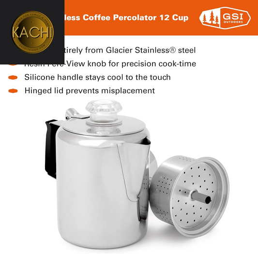 Percolator Coffee Pot I Glacier Stainless Steel with Silicone Handle for Camping, Backpacking, Travel, RV & Hunting - Stove Safe